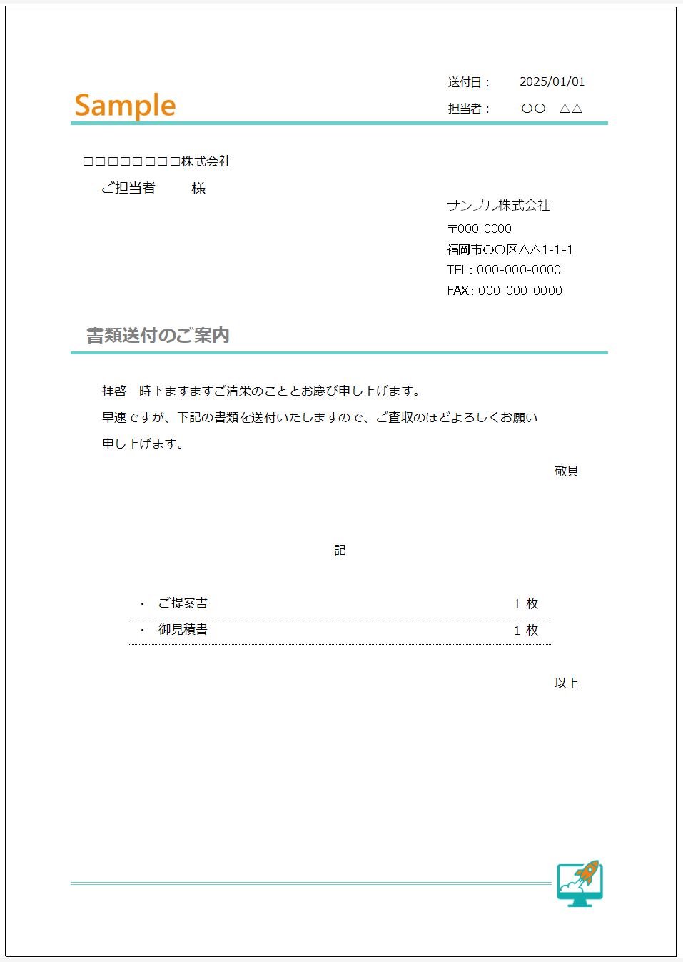 このテンプレートは、シンプルながらも洗練されたデザインが特長の書類送付状です。